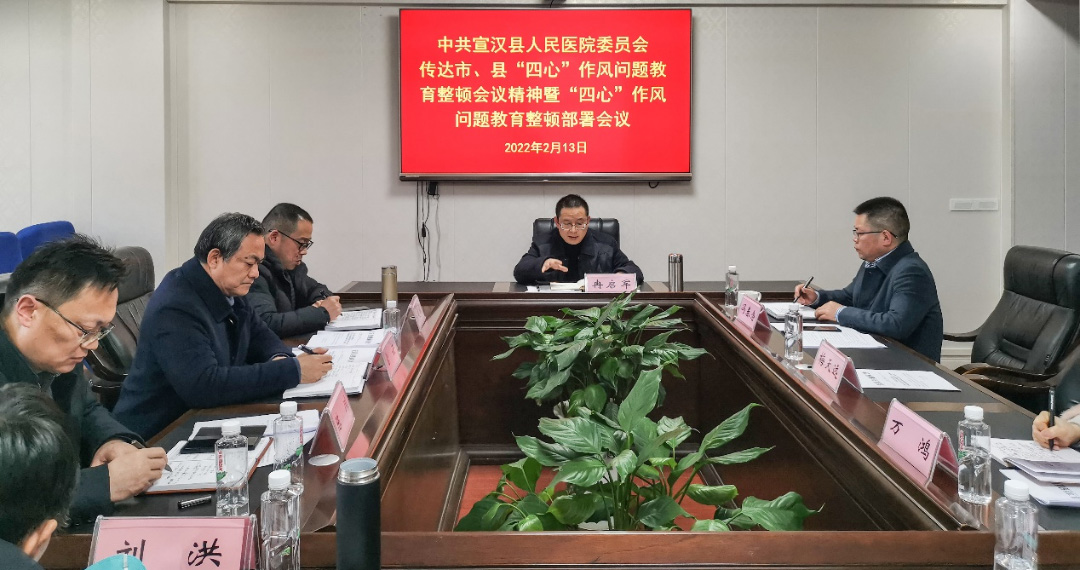 2月13日,中共宣汉县人民医院委员会召开了传达市、县“四心”作风问题教育整顿会议精神暨“四心”作风问题教育整顿部署会议,安排部署全院教育整顿工作。院党委书记、院长冉启军主持会议。