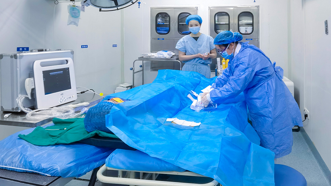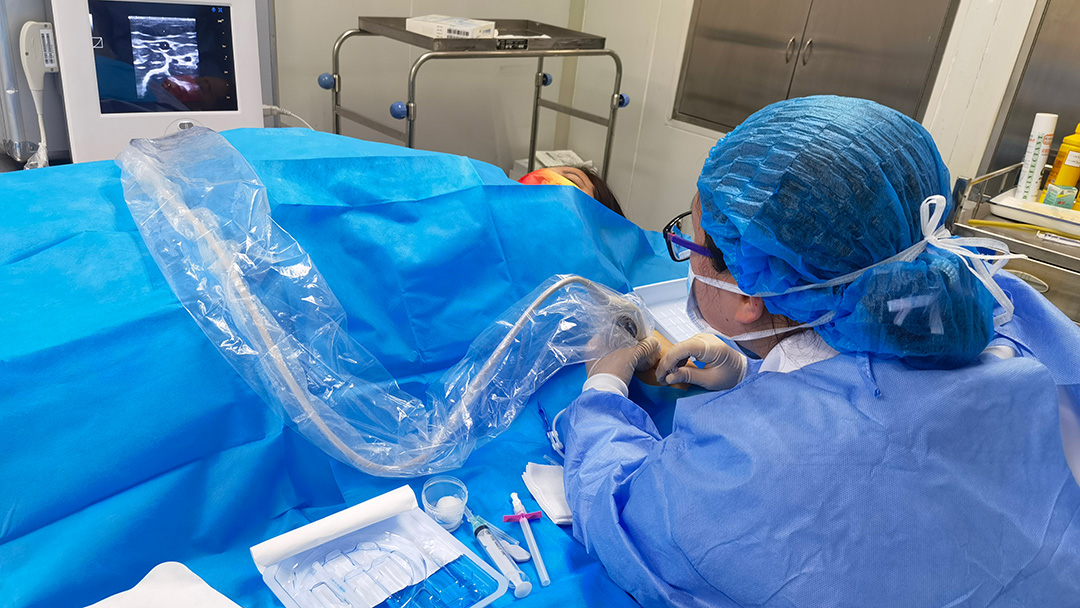 操作者在超声引导下精准送入引导针