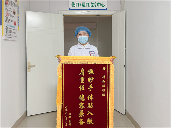 2月24日,我院门诊部伤口/造口治疗中心收到了一面特殊的锦旗。