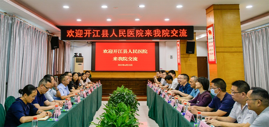 6月23日,开江县人民医院院长赵毅携临床、医技、职能科室负责人一行来院交流学习等级医院评审工作。我院院长冉启军以及相关科室负责人参加会议。会议由冉启军主持。