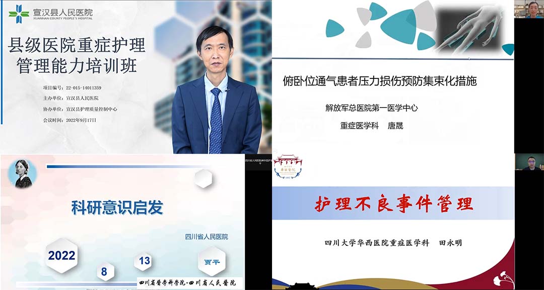 2022年9月16日,由宣汉县人民医院主办,宣汉县护理质控中心协办的省级继续教育“县级医院重症护理管理能力培训班”顺利召开,本次学术会以“赋能基层重症护理,提升重症管理能力”为主题,采用线上授课的方式,诚邀省内护理同仁共享此次学术会议。本次学术会议播放量高达6000余次,受到省内各护理同仁的一致好评。