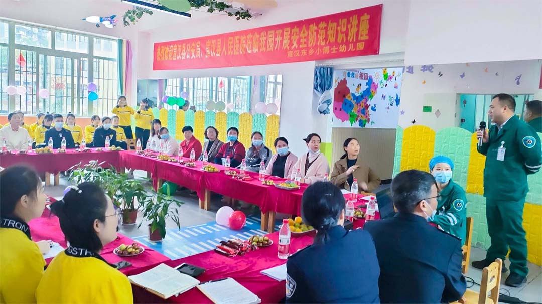 为了增强儿童安全防范意识和应对危险的自救能力,近日,宣汉县人民医院联合县公安局走进东乡小博士幼儿园,开展安全防范专题知识和急救技能培训活动。