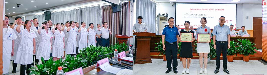 会上,青年医师进行了入职宣誓;院领导为4名获得才艺作品优秀奖的医生和在演讲赛中获得一、二、三等奖及优秀奖的科室颁了奖。