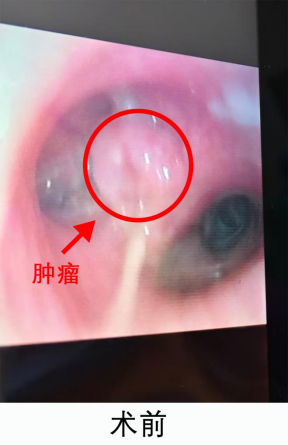 该患者肿瘤位于左肺上叶与支气管交界的关键位置,紧贴肺门区大血管,手术难度极高。经多学科团队评估,决定先行为患者实施新辅助化疗联合免疫治疗,待肿瘤缩小后,再行手术治疗。