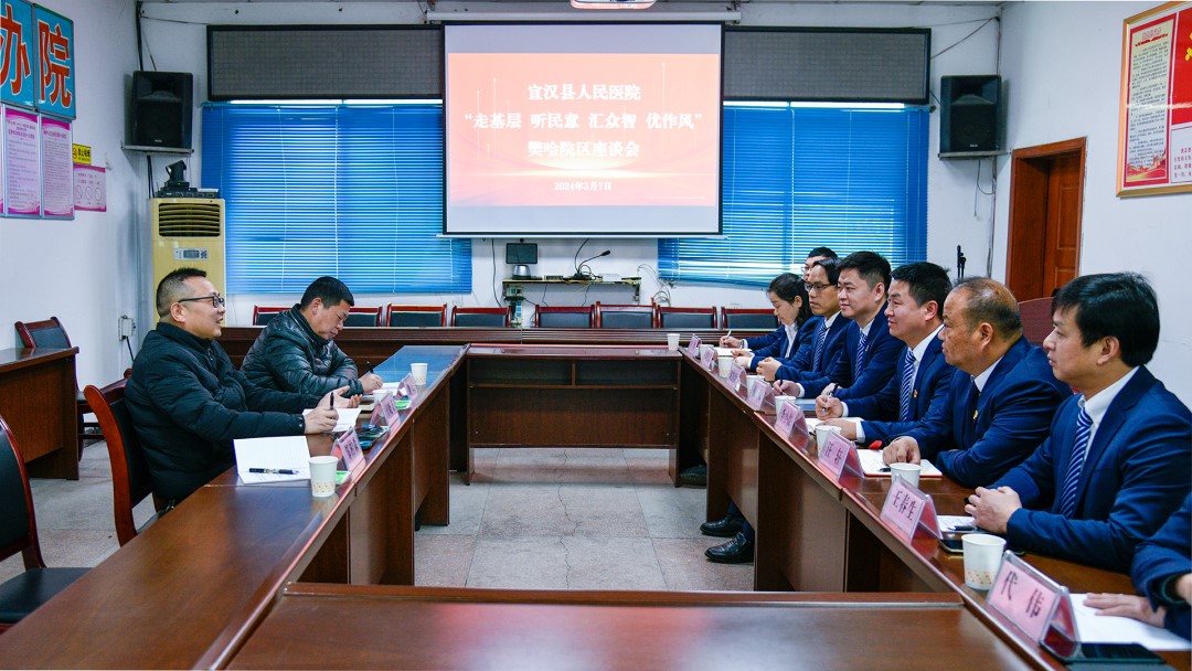 王晓飞一行深入临床一线察看了各科室的业务开展及基础设施设备、院容院貌等情况,随后召开了宣汉县人民医院“走基层、听民意、汇众智、优作风”樊哙院区调研座谈会。会上,听取了李小波关于《携手创新美丽宣医 助力提升健康樊医》的医院详细情况汇报。